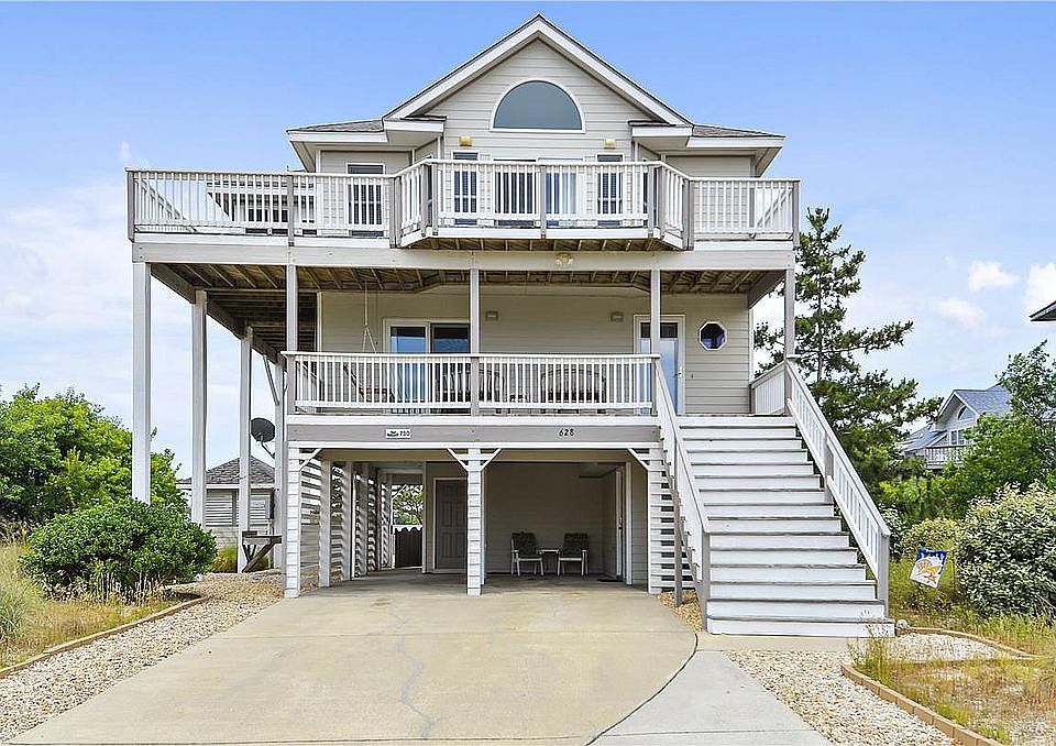 Beautiful contemporary home, nice views of the brilliant blue ocean, shows like a model home , beautifully decorated with upscale furnishings, true cooks kitchen features sea glass tile backsplash, gorgeous easy care durable lv wood floor in great room and lower entry hall, (new 2021) tilt-in Andersen windows on top floor, new wood decking upper level, classic ceramic tile floors/durable nylon carpet, luxurious large private pool & hot tub, completely updated including all appliances, carpet, newer roof and HVAC (2016), new pool motor and updated hot tub with built in lounger and 32 jets. 3 master suites. Located in the most sought after Section E of Ocean Sands with larger lots, more open spaces and less populated beaches. Enjoy the Short Walk to the beach - Estimated 266 yards from driveway to beach walkway. Tennis, Shopping, Restaurants and Activities close by. Turnkey ready. This home has been very well maintained including all electric, plumbing. Immaculate condition. Excellent investment property. Sold furnished. This home is the perfect home for investment, second home or primary home. If you are looking for a well maintained home that has ocean views, is located close to the beach, has a great large pool area, is turn key ready and excellent rental of $40,000 in 2021 for just 9 weeks, then this is the home for you. Put this home on your must see list. This is what the sellers like best about their home- "Easy investment for first time investor because it is ready to go." This home is situate on an Elevated Lot located in Flood Zone X and does not require flood insurance. Wake up to the beautiful blue ocean view every morning across from the natural open space! Only 266 yards to the beach. Float in the large, luxurious 16 x 32 in-ground fiberglass pool, (pool toys too!) relax in the updated hot tub with 32 jets surrounded by a sheltered gazebo. Light, airy great room boasts updated furnishings w big screen TV/home theater multi speaker system. Excellent well equipped kitchen with updated appliances which previous guests have declared to be "the most well equipped kitchen of any rental (they've) stayed in"! Screened porch for alfresco dining/gathering. Rocking chairs on deck to relax and watch the waves. Porch Swing on shaded middle deck is perfect for reading or bird watching. Upgraded bedding includes luxury Waverly, Levtex and Hilfiger bedding. Ceiling fans throughout. Designated open space and multi use path for walking, strolling and cycling. Shopping, The Currituck Club Premiere Reese Jones Golf course, ice cream, restaurants and activities are all within walking distance. Pine trees provide privacy and this home boasts the only sculpted live oak tree in the neighborhood. Naturalized landscaping. Outdoor BBQ area is graveled for easy use and safety. Everything has been thought of for you so that you can relax and enjoy the beautiful Ocean Sands uncrowded Section E Beach. Currently used as primary residence by local owners.