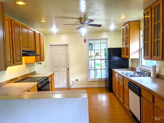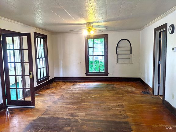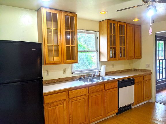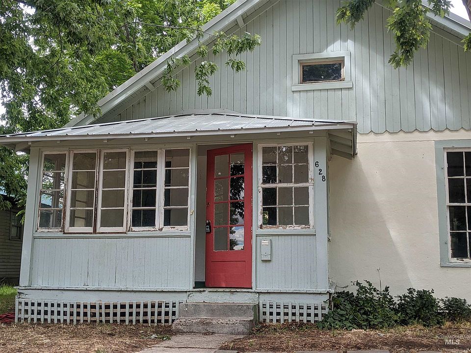 VACANT! BRAND NEW metal roof, and an open floor plan in this cute one bedroom/bath home. Kitchen has been nicely remodeled, and master bath was as well. The front covered porch is enclosed and could be made into a great entry/sitting area. Back covered porch houses the washer/dryer area and access to the back yard deck and basement. The large yard with low-cost irrigation water could be an oasis starting with the huge deck just off the back of the home, and with the wisteria covered gazebo, add the garden areas, alley access for parking or RV, and there is a large shop with electricity. Basement could be renovated and made into more living space.
