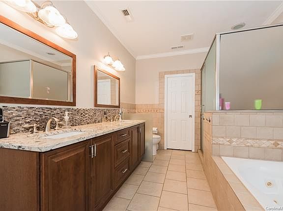 Location, location, location!! Minutes from the Arboretum, Southpark, and Ballantyne! This home not only has it's own pool but it also has 2 master bedrooms!! One up & one down. Lower master bedroom has it's own fireplace, lighted built in's, canned lighting and large spa-like bathroom. Upper master/Bonus has it's own sitting area. Upgraded kitchen with granite counters, tile back splash, beautiful cabinets, lots of serving spaces and a cute breakfast nook. French Doors lead from kitchen area to the lovely three-Season Solarium, patio/deck and pool. Large family room has built in's and rope lighting feature in ceiling. Home includes Beautiful Wood floors, Crown molding/trim, Chair-Rails, and multiple Built-Ins! Fireplace in Family Room & Master are both gas fireplaces! Beautiful Chem-Free Pool w/ Chlorine Generator! Two newer HVAC's and newer Windows! Downstairs Laundry w/Cabinets & Granite laundry folding counter! Oversized Garage! Large Deck, Secluded Back Yard, Irrigation System!