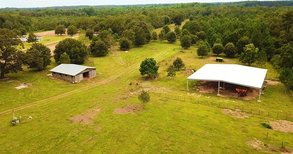40 acres with 24 acres of improved pasture with a cross fence. Remaining acreage is wooded and full of deer and turkey- excellent hunting land. Pre-wired 32x44 eight stall horse barn. 75x75 hay shelter/livestock barn. Water troughs in four locations on property that are fed by well. Two quarter-acre fenced lots are set up as horse pens. Front 10 acres are fenced with horse wire. Back 14 acres are fenced with five-strand barbed wire. Beautiful big oaks are the entrance. This is the perfect site to build your dream home!
