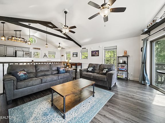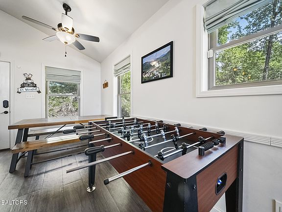 Step inside to find upscale finishes throughout, including luxury vinyl plank flooring, soaring ceilings, and expansive windows that flood the space with natural light and bring the outdoors in. The open-concept living area features a cozy gas fireplace and flows seamlessly into a stylish kitchen outfitted with like-new stainless steel appliances and granite countertops. Retreat to the elegant master suite, complete with a spa-like en suite bath showcasing a walk-in tiled shower and private access to the back deck—perfect for unwinding in the bubbling hot tub under the stars. Guests will love the dedicated gaming area, featuring foosball, arcade games, and more for hours of fun. Premium upgrades include durable Hardie board siding, composite decking for low-maintenance outdoor living, and even an EV charger for electric vehicles. Whether you're looking to expand your investment portfolio or enjoy your own mountain escape, this cabin offers style, comfort, and strong rental potential. **Make sure to check out the 3D virtual walkthrough and video!