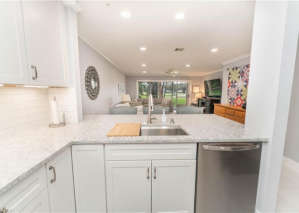 Fully renovated and move-in ready, this stunning 2-bedroom, 2-bath condo in Emerald Greens overlooks the Quail Run Golf Course and offers the best of Naples living. Enjoy a bright, open layout with high ceilings, open kitchen with breakfast nook, and brand new quartz countertops. Relax on your screened lanai with peaceful sunset golf course views. Or Enjoy your own courtyard where you can grill out and barbecue and your own 1 car detached garage. Additional updates include custom walk in shower, new kitchen cabinets, upgraded appliances, custom built primary closet, brand new tile and carpets throughout bedrooms. Located just minutes from shopping, dining, and Clam Pass Beach, this condo combines comfort, style, and convenience in the heart of Naples. Schedule your showng today!