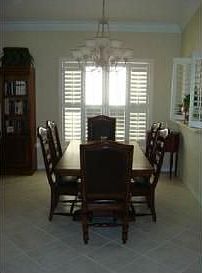 This former model has lots of upgrades including tile inlay in entry neutral tile thruout crown moulding plantation shutters thruout wood flooring in 2 BR's. Large kitchen w/corian counters eat in kit w/bay window. Golf view off covered patio.