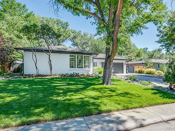 Backing to the Highline Canal on a treed and private site, this modern, Carmel-style home was completely gutted down to the studs and renovated using sleek and sexy materials including wide-plank white oak floors, leathered marble countertops with a waterfall edge, high-end appliances and custom cabinetry. The bright and airy main floor welcomes family and friends with its open-concept living and dining, European-styled kitchen and French doors leading to a perfect home office styled with exposed beams and views of the private yard. The expansive master suite features a sitting area, walk-in closet and spa-like bath with Ann Sacks tile, Robern cabinetry and marble walk-in shower. A second bedroom and a full bath complete the main level and create the perfect spot for guests and kids alike. The spacious lower level showcases an expansive media and rec room, two additional bedrooms, an additional ¾ bath, ample storage and a large laundry area. The luxurious interior of the home is only matched by its impeccable outdoor living space. The fenced-in backyard features a lush lawn and gardens, utility shed, custom outdoor fireplace, and a patio area with ample dining and seating space, ready to host quiet evening cocktails or gatherings with family and friends. A 2-car attached garage, an additional outdoor space for an RV or boat, and direct access to the Highline Canal complete this spectacular home!