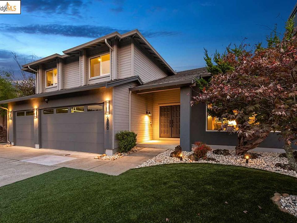 Ridgemont Beauty with exceptional modern renovation. The exterior has been modernized with a stucco conversion, contemporary garage doors, upgraded exterior lighting. The interior was reimagined in 2019 with stylish contemporary updates. The newly redesigned kitchen was changed to increase the kitchen's efficiency and opened up for better access to the family room, dining room and the vast back garden. The family room opens to a vast level outdoor entertaining, gardening and play area. The main level bedroom and newly renovated bath create a private guest suite. The upper level features a primary en-suite with view deck, and third and fourth bedroom. The oversized upper level bonus room can be used for may purposes. The newer systems including furnace, air conditioning, sewer, windows, sliders and smart technology. The canyon vistas and south bay view bring in great light. If you have been looking for a wonderful home that checks the boxes this home makes the top of your list.