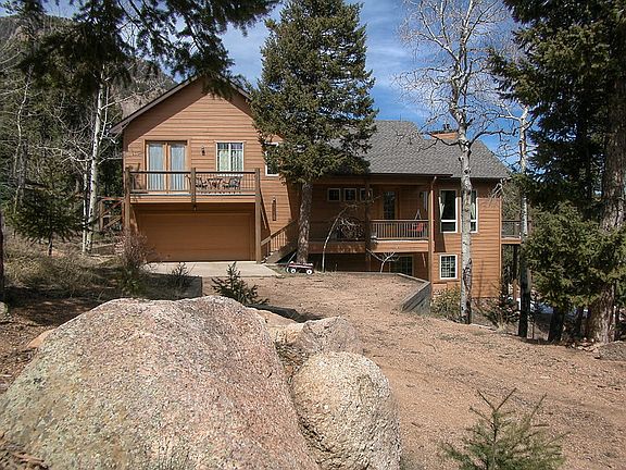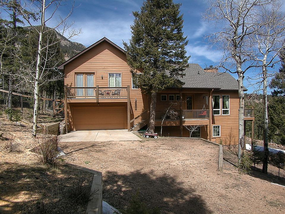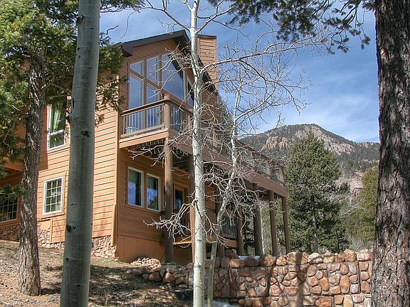 Location, location, location. This stunning custom Palace home located in Upper Crystal Park offers mountain living with easy access to the city. The home boasts views of the Colorado Springs, Cameron Cone, Sunrise Peak, subtle sounds of the waterfall nearby, multiple decks, landscaped yard, vaulted ceilings and large windows throughout to provide tons of natural light. The open layout of the main level allows for easy entertaining or family time. The kitchen is a cooks dream with a double oven, gas cook top, custom countertops/backsplash and a very large breakfast bar. The living room has convenient wet bar, stone fireplace and direct access to the huge wrap around deck. The master bedroom is set apart for privacy, has its own private deck, adjoining master bath and large walk-in closet. Each of the bedrooms on the lower are large with their own en suite full bathrooms and a walk-out to a deck/patio. Heating of this custom is provide thorugh radiant, in-floor throughout. The exterior of is designed for outdoor enjoyment! The yard is level, landscaped, has multiple decks and patio area, has a dog run connected to the garage and your very own trail to the four-tiered community waterfall!!! This is a home you will want to tour and not leave!