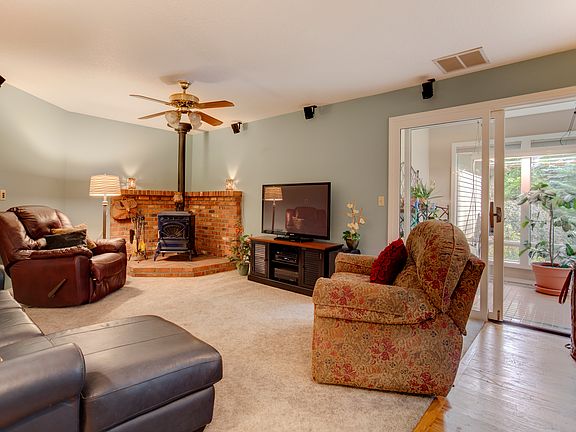 Great home with privacy. Open floor plan with hardwood floors and vaulted ceilings. Updated kitchen w/quartz countertops, large island with gas cooktop & seating. Master bedroom has en-suite bathroom with sauna, walk-in closet + separate office. Large Shop in garage w/ heat and A.C.- could be 3rd garage bay! Gazebo, covered hot-tub, garden boxes, on a large corner lot. Tiled sunroom. Great location!