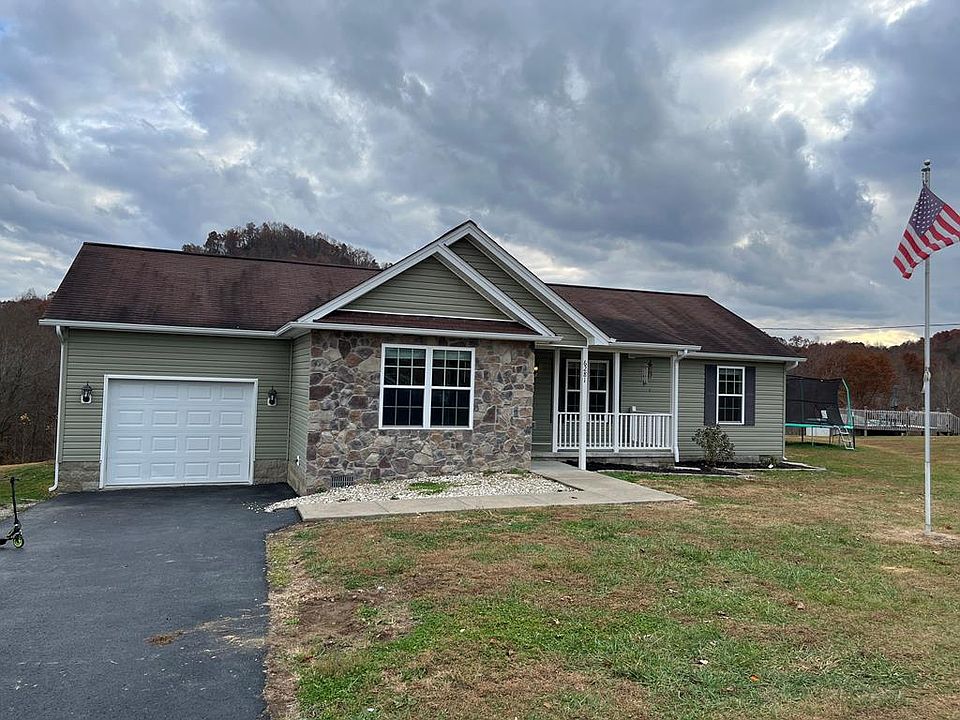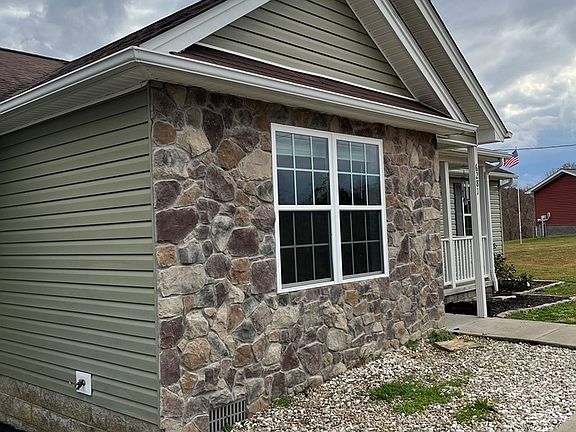 3BR, 2bath home with blacktop drive, sidewalks, vaulted ceiling, and attached one car garage. Also the master bathroom has a jacuzzi tub. This home has new vinyl flooring throughout which is laid over hardwood in some rooms. All this situated on 2.38 acres, located 1.8 miles W of the hwy 32/Bullfork junction.
