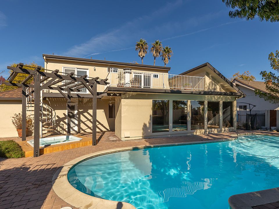 Spacious 5 Bedroom, 3 Bath home in one of Goleta's established neighborhoods with over 2,300 sq ft on a 7,405 sq ft lot. The bright, open main level is ideal for working from home or hosting gatherings. Step into a backyard retreat with a pool, in-ground hot tub, and a second-story Trex deck for sunset views or relaxing outdoors. Features include A/C, solar panels, pavered driveway/walkway, a 2-car garage with extra room for storage. Close to Goleta parks, beaches, trails, and schools.