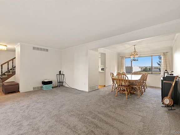 Location, Location, Location! This Cherry Creek Vista South home sits on a partial cul-de-sac and has access to 100s of miles of trails including Cherry Creek State Park without crossing a street, it sits steps from the newly renovated Peakview Park, and is a short walk to the neighborhood pool and schools. Upon entry, you're greeted by a hardwood foyer and drawn into a large living room and dining room with new carpets. The bright, spacious kitchen and adjoining breakfast nook open to a cozy family room with gas fireplace. A large backyard has complete privacy with a new fence and no homes behind. Upstairs you'll enjoy the primary bedroom with en suite bathroom as well as an additional 3 bedrooms and second bathroom. The basement features a rec room, bedroom, bathroom, and utility room with laundry. This move in ready home has a fantastic floorplan and endless potential for upgrades and personal touches!