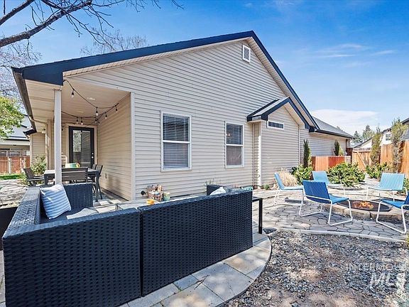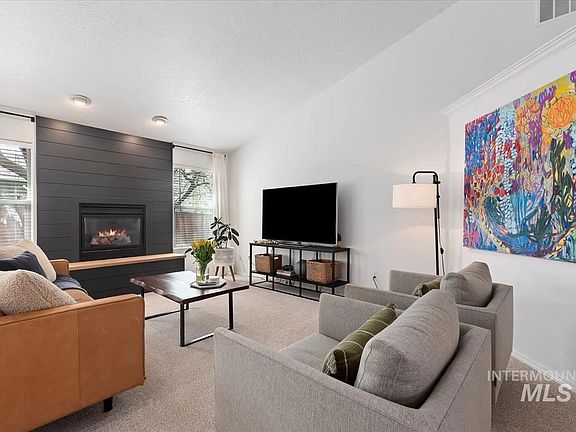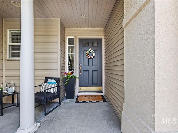 Charming single-level home perfectly situated in a peaceful cul-de-sac in the highly desirable NW Boise area, just minutes from the foothills. This beautiful residence offers a thoughtfully designed split-bedroom floor plan, providing the primary bedroom privacy while maintaining an inviting, open flow. The primary suite is a true retreat, featuring a spa-like en-suite bathroom including elegant quartz countertops, dual Kohler vessel sinks, and sleek tile flooring, all contributing to a serene atmosphere. The crown jewel is the expansive, floor-to-ceiling walk-in shower—an impressive, modern focal point. Not to be outdone, the laundry room and second bathroom have also been stylishly updated with contemporary tile flooring, adding both function and beauty to these spaces. Step outside into your own private oasis, featuring a meticulously landscaped front and back yard that offers a tranquil, low-maintenance retreat. This home truly offers the best of Boise living! Weekly lawn maintenance is included in HOA!
