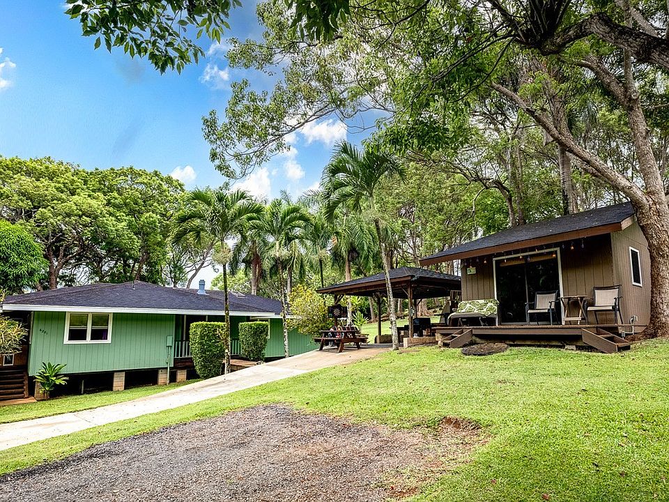 Nature & adventure lovers will be enchanted by this hidden oasis nestled in the Keapana Valley, just North of Kapaa! Located in an extremely private setting and bordered by the Historic Valley House Estate, this nearly 1-acre playground of a property has exceptional river bluff frontage with unrestricted mountain, waterfall & sunset views. The property has numerous permitted structures, including a 2-bedroom, 2-bath main residence w/ large screened-in lanais which make for incredible indoor/outdoor living. Multiple home office spaces are ideal for working remotely. There is also a detached multi-room storage building, a free-standing carport, and an amazing treehouse/gazebo overlooking the pool.<br><br>The parcel is served by a private water system (no expensive water meter required) and allows for the construction of a full-sized, second residence / ADU (Additional Dwelling Unit). Potentially a great fit for extended families or two completely separate owners (the CPR Units can each be conveyed independently).<br><br>Being the last house up the valley, there is minimal vehicular traffic. From the property one can walk, hike, bike, or ride horses for miles along country roads or just stay at home and fish for bass in the backyard, then slip down one of the water slides for a dip in the stream! Yet, while it feels incredibly remote, the property is just minutes from public/private schools and within close proximity to the super fun restaurant/live music/bar hopping town of Kapaa. <br><br>This Keapana Keeper is a "fun zone" for sure - a great place for hosting backyard BBQs and entertaining with family and friends. A wonderful place to call home!<br><br>Other notable property features:<br>• Beautiful Mature Landscaping <br>• Private Water Well <br>• Outdoor Hot/Cold "Tree" Shower<br>• Above-Ground Pool w/ Slide<br>• Fireplace/Fire Pits<br>• Skylights<br>• Ample Storage<br>• 2-Office Spaces<br>• High-Speed Internet<br><br>See also, MLS #654051 for house alone (Unit 2).