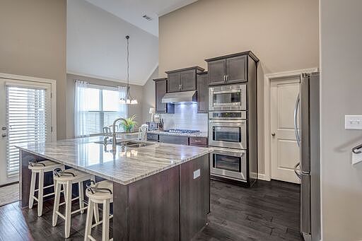 Custom Built Grant Home with over 2800 sqft of sensational living space! Wellshire Plan features 5 Beds (4b/r + bonus) & 3 full Baths. Custom Chief's kitchen with breathtaking granite slab, S/S Frigidaire Appliances, 5 Burner Gas Stove, Dbl Ovens, Timeless Subway Tile Back Splash & Pantry! Formal Dining Rm, Mud Rm, Laundry Rm & Dark Hardwood Flrs, Granite C/Tops is all baths, Luxury Bath, Free Standing Soaker Bath Tub and King Spa Shower! Something for everyone; Community Pool, 3 Lakes, & Trails