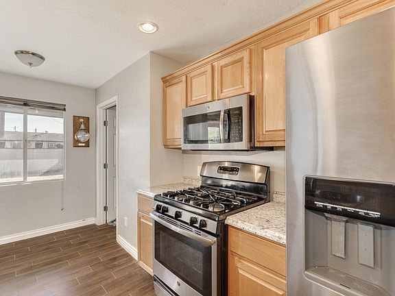 Beautifully remodeled home! Mature landscaping welcomes you to natural lighting, open living space with updated wood-like flooring and neutral color tones. Kitchen includes stylish countertops with stainless steel appliances, gas cooktop, ample prep space and a dining area. Generously sized rooms with. Large backyard is spacious with plenty of room for your landscaping vision as well as a storage shed.