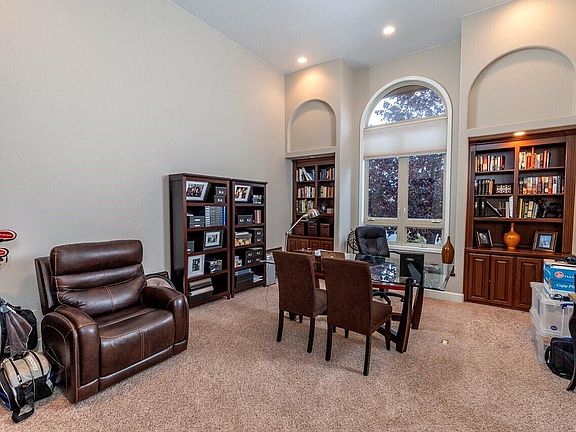 Luxury living in the country. Peaceful, gated, fully fenced acreage offers gardening, hobby farming or equestrian options. Grand tile entry reveals soaring ceilings and their meticulous designs. Entertain in nature on covered and lower-level patio as dining and ''nook'' areas access directly via oversized and ''French Door'' sliders.Large, chef's kitchen w/ gas cooktop and loads of storage opens to immense great room, exposed-beam accent, central wood stove, completed with built-in wet bar and storage.Well-appointed primary suite has sitting area with window surround, boasts oversized shower, jetted soaking tub, dual vanities and large divided walk-in closet. Massive 1,830 sf garage houses built in storage, 3 deep garage bays and bonus workout/hobby rm in finished would-be 4th bay.Farm Amenities: barn w/turnout, riding arena, auto field irrigation, fenced goat pen adjacent to pasture, 1 acre deer-fenced orchard w/ fruit trees, direct access to upwards of 30k acres BLM land.