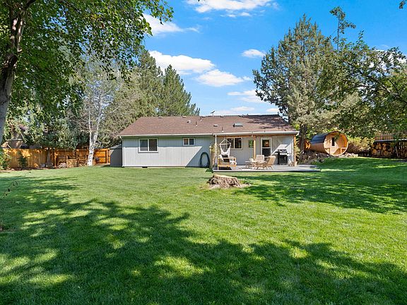 Located at the end of a quiet cul-de-sac in NE Bend, this hidden gem is situated on an immaculate .37/ACRE property & is designed for the modern urban homesteader. A welcoming porch leads to the light-filled Great Rm with vaulted ceilings, engineered wood floors, custom lighting and cozy wood stove. Charming Chef's Kitchen w/shiplap accents, stainless appl, expansive wood isl, & floating shelves opens to spacious Dining area w/access out to back deck for seamless indoor/outdoor entertaining. Primary Suite offers shiplap accent wall, walk-in closet, quartz vanity & tiled shower. 2 additional BR/full BA. Relax and entertain in your backyard OASIS featuring a fully fenced yard w/mature foliage and landscaping, Trex deck, Nooska 6-person sauna, chicken coop, fenced garden w/greenhouse & compost. 2-car garage w/workbench. Just minutes to shops, restaurants, cafes, hospital & top schools, this home blends modern comfort w/self-sufficient living. Short-term rental eligible, per Bend STR Map.