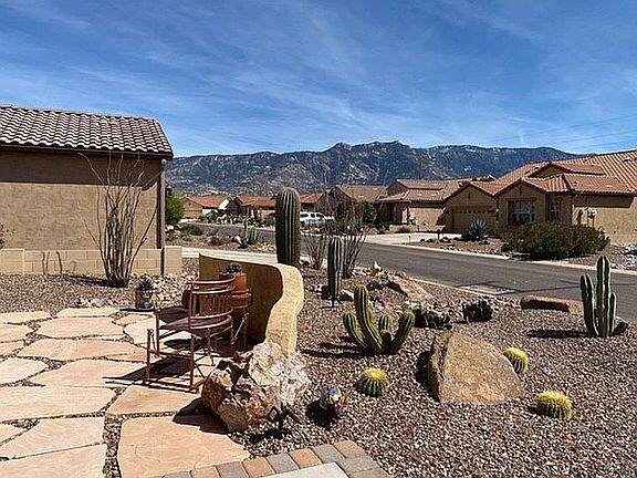 NOTE: showings are by appointment only and we will require masks. Booties and hand sanitizer will be provided. Take advantage of record low interest rates! Buy our house now and we’ll rent from you until year-end when our new home is completed! This 2 bedroom, 2 1/2 bath plus den 2018 Dolce model has many premium upgrades including all tile floors (no carpet), 42” kitchen cabinets, quartz countertops. Upgraded bronze hardware and fixtures, ceiling fans, pendant lights and foyer/dining room chandeliers, 8 foot interior and exterior doors, LifeSource whole house water filtration system, whole house surge protector, rain gutters, two custom security doors and plantation shutters throughout. (Even on the oversized patio slider). GE slate colored kitchen appliances and Bosch washer and dryer included. Relax on the spacious north-facing epoxy-coated patio with partial mountain views and pergola. Expanded master bedroom provides a larger bathroom, bigger walk-in closet & added linen closet. Enjoy the guest bedroom that is like a 2nd master suite w/2” extension and en-suite bathroom. 4’ extended spacious garage with service door, laundry tub, golf cart bay, epoxy-coated floor and 4’ extended driveway. Desert landscaping with no pesky irrigation or electric and added grill wall at end of patio. Most furniture available on separate bill of sale, please inquire about the items you’re interested in. All this, as well as the amenities of the beautiful SaddleBrooke age 55+ resort community with multiple clubhouses, restaurants, golf, tennis, pickle ball, dog park & outdoor pools and spas. Hurry, this home is in the very social unit 49 and won’t last! 2019 lifted Club Car Onward golf cart also for sale separately. We have an attorney and title company who will finalize the sale.