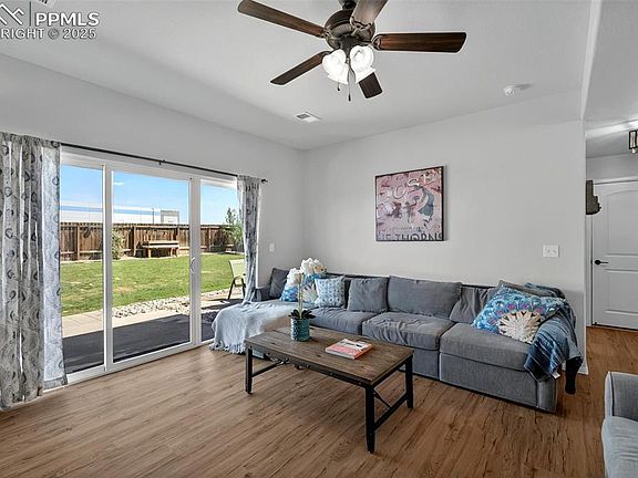 WOW! This home shows pride of home ownership! Meticulously maintained! Updated in Contemporary colors with Modern, fresh, on-trend improvements. The best part about living here, NO neighbor behind; just privacy, and commanding, unobstructed views of Colorado’s stunning Front Range to the west, create a true mountain-living experience. Located in the Painted Sky at Waterview neighborhood, this well-maintained 4-level home offers 4 bedrooms, 3 bathrooms, and a 3-car tandem garage. The bright, open kitchen is filled with natural light and offers a spacious pantry, chic open shelving, and extra deep counter space for rolling out that pizza dough! The family room features a Brand New EXPANDED slider door, ceiling fan, and Luxury Vinyl Plank flooring. Matter of fact, the only place you will find carpet in this home, is the brand new carpet in the basement suite, which functions as a recreation room or a non-conforming 4th bedroom. You will need to see in person all the added, cool features for functionality in this home including: laundry room counter and cabinets, stair landing storage, decorative trim in the primary suite, wainscoting in the half bath and guest bathrooms, and several chic ceiling fans “fandeliers” with a minimalist silhouette. Backyard is fully fenced and includes an expanded patio, nectarine tree, raised planting beds, and sprinkler system. 3 Car Tandem Garage includes insulated door, service door, enhanced overhead lighting, and built-in shelving storage. Air Conditioning 2019. Basement Finish 2023. This beautifully cared-for neighborhood is conveniently located near Big Johnson Reservoir, Widefield Park with over 50 acres of playground, basketball court, baseball backstop, pickleball courts, trails for dog walking, and an 18-hole disc golf. Quick commute to Peterson, Schriever, and Ft. Carson, easy access to abundant shopping, dining, and entertainment along the Powers corridor. 5 minutes to the airport, yet away from all the hustle and bustle.