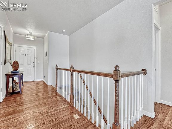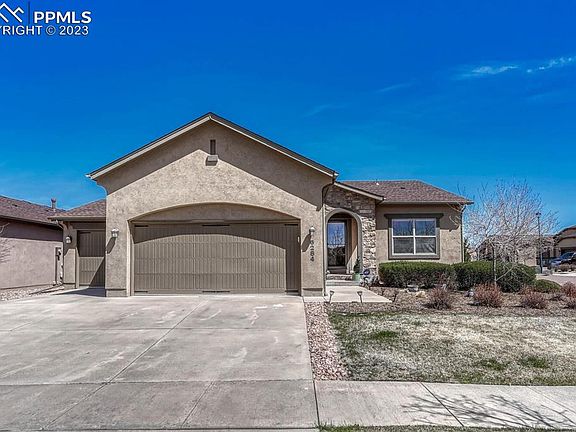 Welcome Home to the Low Maintenance Portrait Floor Plan! Stunning Hard Wood Floors greet you as you enter this Home with Desired Open Floorplan. Convenient Front Bedroom and Full bath are on your Right. Just past there you enter the Kitchen/Living Room/Dining Room Open Area. Kitchen features large island, solid surface counters, pantry and stainless steel appliances. The Large Master Suite has a 5 piece bath with Dual, Cultured Marble Vanity, Soaking Tub and Shower with Seat. The Finished Basement has a Large Recreation/Family Room with Wet Bar, Two Additional Bedrooms, Full bath and an enormous storage area. Three-car Garage, Mountain views and Back Patio with privacy wall completes this wonderful home. HOA provides Lawn Care and Snow Removal. Located near the intersection of Woodmen and Power, this home is conveniently located with easy access to all Military Bases, parks, schools and shopping areas.
