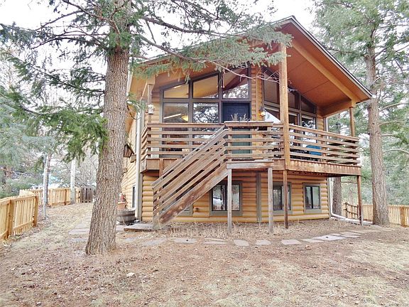 THIS IS IT!! Welcome to your mountain home within 5 mins of C-470 and an easy 25-minute drive to downtown Denver. That's right! Work in the city and live in the mountains without the traffic! This beautiful log home sits on an elevated corner lot with 4-foot-tall granite rock walls and views galore! This home has 3 bedrooms + an office, 3 full baths, an open floor plan and sits on a great lot with a fully finished basement and a completely fenced yard (front and back). Floor to ceiling windows in the front of the home brings this mountain home to life! Sit on your front porch sipping your coffee watching the birds and all the wildlife in the area. Cozy up to your wood-burning fireplace on cold days and enjoy the peace and quiet. Many improvements have been made to this home including a new roof in 2017, gutters, well pump and septic line. It also is open enrollment to Parmalee school, one of the best schools in Colorado! Hurry and get in before Christmas!