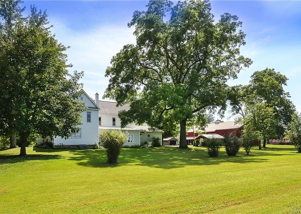 RARE FIND. HAVE IT ALL! Separate home for in law or rental! Farmhouse has very large rooms. Morning room off kitchen with bright windows and wbs. Loads of cupboards and huge pantry. Family room, Florida room, dining room. Beamed living room that has wall to wall carpet and open staircase of the era to second floor. Three bedrooms plus other rooms for office, sewing room etc. Good size updated bathrooms. 2nd living residence built 2009 is two story colonial with garage workshop laundry area, rec area And upper kit, liv room, bathroom and bedroom plus small office or nursery. Very spacious. 40x70 barn with heated office for home business. Another building in rear for hay, a small brick bldg, another garage. Two driveways. Plus 8.7 acres. Zoned agriculture for horses or farm. Located 5 minutes from Hamburg Village. Covered patio with privacy for outside enjoyment. This is a very pretty home with a country location within minutes of churches, shopping, village plaza, etc. Raise what you want from animal to gardens. Hay storage barn. With so much frontage you could have another building lot.