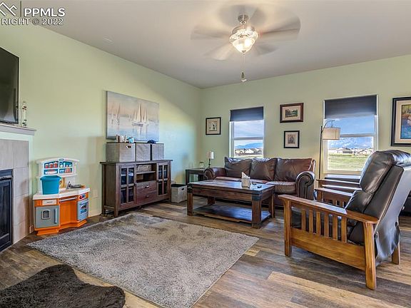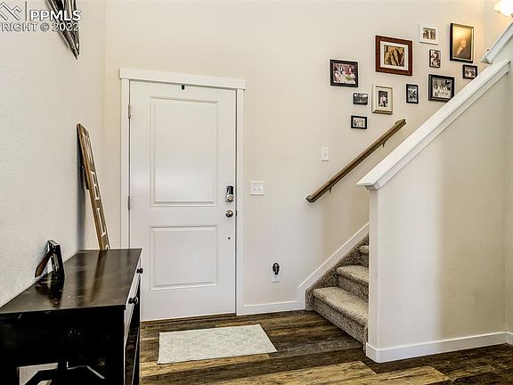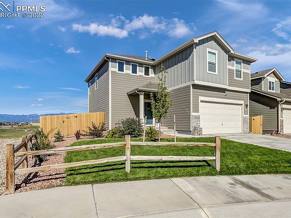WOW what a magical price!! This Completely finished 3 bedroom home is in a great location for privacy with the non build open space behind the house and the no build space to the left side of the house. The main level features upgraded luxury vinyl, Great for easy clean up. The kitchen is a Chef's joy with stainless steel appliances to include a gas range, 4 door refrigerator, walk in pantry and huge corian counter top -working Island and an abundance of cabinets. This open floor plan glows with natural light and neutral colors. Snuggle up on the couch in the great room next to the cozy gas fireplace with a good book or movie and wind down from that had day at work. Upstairs you will find a wonderful open loft that is nicely carpeted and would be great for a Recreation room to put a big screen TV or play room. There are 2 good sized bedrooms and a full Bathroom with a Corian counter double sink vanity, full decorative tile surround tub/shower and tile floor. The private primary bedroom suite is separated from the other bedrooms and has an adjoining extra large walk in close and an adjoining bathroom with Corian double sink vanities with a sitting vanity area and a large tub. The custom tile surround stand up shower with bench seat is wonderful. The 2 car garage has (2) 220V outlets. Enjoy a BBQ out in your back yard that is surrounded with a wooden privacy fence and walk barefooted in the lush green grass. Perhaps you Easy access to Ft. Carson, Schriever, Amazon, Peterson AFB and the or pop up to Powers Blvd for some shopping or a night out. This is a GREAT find. Come take a look.