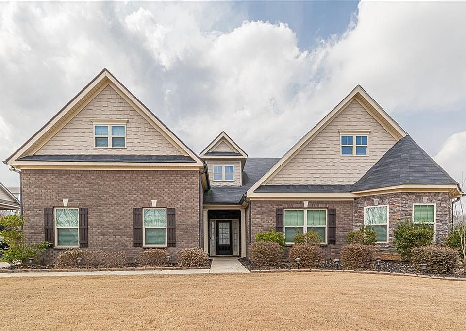 This gorgeous home is a large ranch with an open concept on the main living space. Open the doors to a charming entry foyer that flows into a spacious living room, fireplace and corner summer area. Phenomenal kitchen with granite countertops, stainless steel appliances, walk-in pantry, and tile backsplash. Plenty of casual and dining spaces from the eat-kitchen, formal dining space, and oversized island in the kitchen that accommodates everything. Retreat to the oversized master suite on the main with a sitting area, very large dual vanity, and a walk-in closet! Upstairs features an in-law suite with a private full bath and a bonus room that can be used as an office, media, or playroom. Finally enjoy your morning coffee in the covered backyard. Working from home is not an issue with the pre-wired high speed internet in this smart home. This home is energy-efficient to save you money on utilities bills. Cobblestone Farms is located within close proximity to shopping, restaurants, parks, and recreation. Near GA 400 and GA 306. EAST FACING.