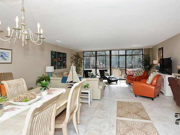 TRULY FABULOUS 2/2 WITH PRIVATE BEACH ACCESS. The largest floor plan in the complex with over 1550 square feet of interior space plus a screened lanai of 155 additional square feet. Completely renovated with exquisite finishes and furnishings the unit is being sold turnkey. The open floor plan features a huge living room overlooking beautiful grounds and the pool beyond. The kitchen includes white wood cabinets, granite countertops, an island with seating for 4, and a closet pantry; a large window over the sink lets in an abundance of natural light. The kitchen opens to the dining room and living room just beyond. A highly desirable split floor plan, the master bedroom with king bed features a wall of windows and built-in shelving. The en suite master bath has two separate granite-topped vanity areas, 2 large closets, as well as the washer/dryer in a third closet. The second bedroom with twin beds and a walk-in closet is connected to the hall bath with granite and glassed-in shower. Tiled throughout, this unit comes with 4 flat screen TVs. Excelsior is a Gulf to Bay complex with resort-style amenities including heated pools and spas, outdoor grills and picnic areas, lighted tennis courts, pickle ball courts, community room, exercise room, saunas, and beautifully landscaped tropical grounds. Perfect for personal use or as an investment property the community has an on-site rental office. This is truly a must-see.