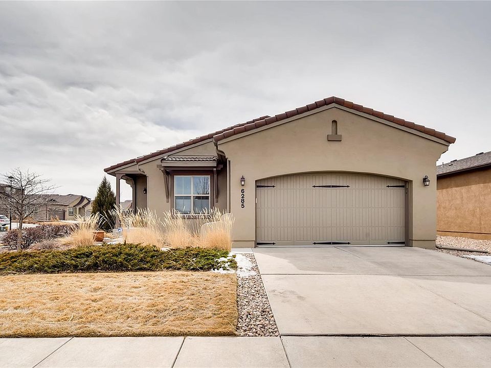 Immaculate Ranch style home with tile roof! Covered front entry leading you to the gourmet kitchen that boasts a gas cook top, stainless steel hood, double ovens, walk in pantry, upgraded cabinetry and granite counters. The family room has a stone surround gas fireplace with wood mantle, TV niches and ceiling fan. The breakfast nook walks out to the covered rear patio. The Master suite has a luxurious 5 pc bath and generous sized walk in closet. A main level study, laundry room and half bath complete the main level. The basement has a large rec room thats perfect for extended entertaining, two additional bedrooms another full bath and plenty of storage in the unfinished space. Central air, ceiling fans, newer furnace, oversized garage, radon mitigation system, chair lift at stairs. Don't worry about mowing the grass or shoveling the snow the HOA takes care of it all! Conveniently located near hospitals, restaurants, shopping, entertainment, Peterson AFB and The Air Force Academy.