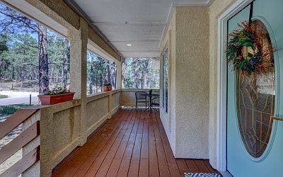 Country Living With Conveniences Of Town. Gorgeous Walk-out Rancher A Hidden Gem Among The Soaring Ponderosa Pines. Immediately Greeted With An Inviting Covered Front Porch Area With Recessed Lighting. Enter Into An Open Living Room With Beautiful Solid Oak Hardwood Flooring, Vaulted Ceilings & Impressive Custom-designed Stack-rock Gas Fireplace. Gorgeous Hardwood Flooring Continues To Walk-out Dining Area. Spacious Eat-in Kitchen Boasts Stunning Hickory Cabinets, Custom Travertine Back-splash & Flooring. (see Sup Remarks),Kitchen Also Features Stainless Appliances, Large Counter Bar, N...ook Area With Bay Window & Pantry. Spacious Master Bedroom Has Vaulted Ceilings, Great Forest Views & Adjoining Private 5-piece Master Bath With Custom Travertine Tile Work. Main Level Is Complete With 2 Additional Roomy Bedrooms & Full Bath With Custom Travertine Tile Work. Fully Finished Basement Provides Great Space To Entertain In The Large Walk-out Family Room. Basement Also Features 4th Bedroom, Full Bath With Travertine Tile, & Spacious Home Office Or Non Conforming 5th Bedroom. Custom Wood Work Details Throughout Including Pine Door Frames, Baseboards & Window Frames As Well As Solid Oak 6-panel Doors. This Home Is Conveniently Located. Minutes From Town. Don't Let This One Pass You By.