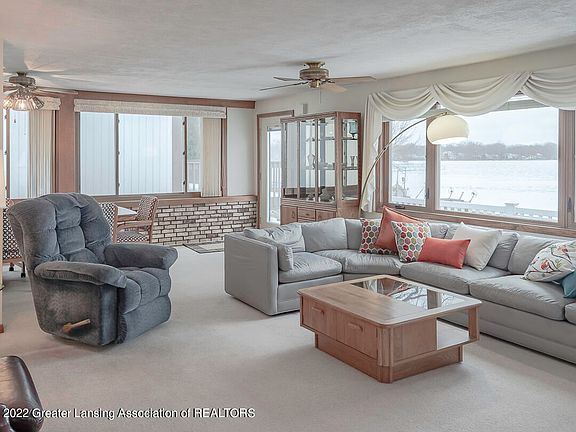 Welcome to 6285 W Reynolds Rd Haslett, MI 48840! Enjoy views of Lake Lansing from the living room of this 3 bedroom, 3 bathroom home! Situated lakefront on 3 lots, this spacious home offers first floor laundry, mudroom, and master bedroom that features a walk in closet and attached master bathroom. The kitchen includes quartz countertops and opens up into the dining room with plenty of natural light coming in through the many windows. Make your way downstairs to the finished basement that greets you with a brick gas fireplace, wet bar and full bathroom. Outside features a brick patio, shed, 2 car heated and finished garage, sprinkler system, and aluminum frame dock with fiberglass planks and bench. Updates to the home include new windows, siding and vinyl BuffTech deck in 2019, along with a new roof and concrete seawall in 2014.