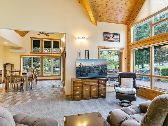 Gorgeous horse property on 38.95 acres with 14.5 irrigated acres. The 4,035 sq. ft. custom home has a beautiful great room that overlooks a fantastic pond, 5 bedrooms, 3.5 baths, office, second master upstairs and so much more. Enjoy the amazing 6 stall custom 36'x100' barn with heated tack room, viewing room, full kitchen and bath, veterinarian room, double shower & wash rack, automatic waterers, and high quality steel fencing. There is a covered 60' round pen with lights and a brand new 144' X 72' covered arena. The irrigation system is installed on timers with K-line and is hassle-free, two shops, loafing sheds, entry gate & so much more. Ride directly off the property on to BLM! This peaceful private property is perfectly located just minutes from town. Don't miss out on this premiere equestrian estate!