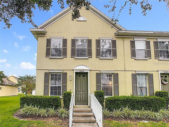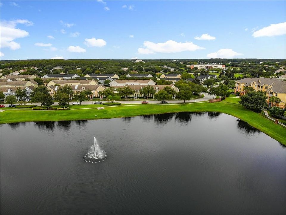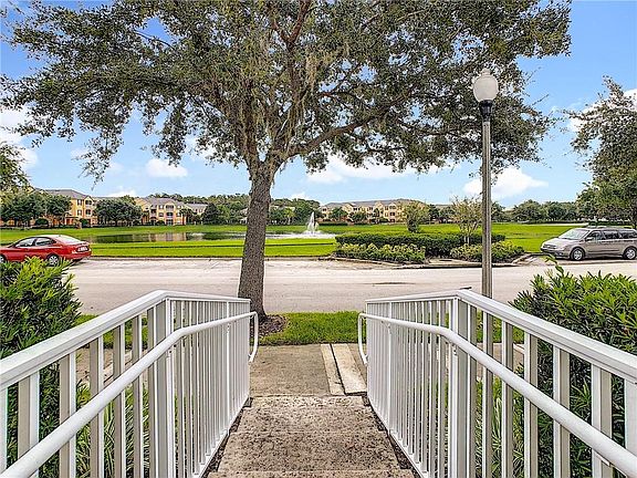 Looking for maintenance free living with many wonderful amenities to enjoy? Gentry Park is one of Vista Lakes premiere townhome communities. This is an END Unit that has great views of a peaceful pond with fountain. Gentry park HOA is in the process of replacing all roofs and gutters on the townhomes. (this unit being replaced very soon) (see photos of darker roof color on buildings that have been done) A/C replaced 2017, Water Heater replaced 2019. This home recently received lots of loving with interior walls, ceilings, doors and baseboards freshly painted with neutral color throughout. This home has a lot of flexibility with room placement. The floor plan has a dining room, great room and a separate breakfast nook. Good size kitchen with stainless steel appliances and neutral color Corian countertops. Glass top range, build in microwave, breakfast bar and ample cabinets. There is a large pantry and laundry room combination right off of kitchen for added convenience. Kitchen opens up to great room making it a breeze to entertain friends and family. Family room opens up to large Screened in Courtyard leading to 2 car garage. The Courtyard floor was just painted. Lots of extra storage under the stairway. The stairs were just redone with Oak. Upstairs you will find new luxury vinyl wood plank flooring throughout. The Master Bedroom is spacious and overlooks pond and fountain. Master Bathroom has dual sinks, new commode, Walk in Shower with new decorative tiles and there is a Walk In Closet. Other 2 bedrooms are spacious. Ceiling fans throughout. The 2 car garage completes this home with pull down attic access. Gentry Park is truly maintenance free as the Association takes care of all exterior maintenance including yard and exterior painting on rotations. Vista Lakes is a prime location located next to the shopping center with major retail. Walk or ride bikes to park complete with basketball courts, soccer fields, softball, playground and gazebo. Vista Lake has a place to put in a non motorized boat and a fishing pier. This home is close to Orlando International Airport, Lake Nona Medical City, area attractions, University of Central Florida and beaches. Great access to major roadways for an easy commute. There is ample parking for guests in the front of the building. Come check this one out today!!!