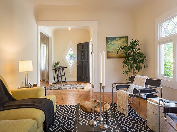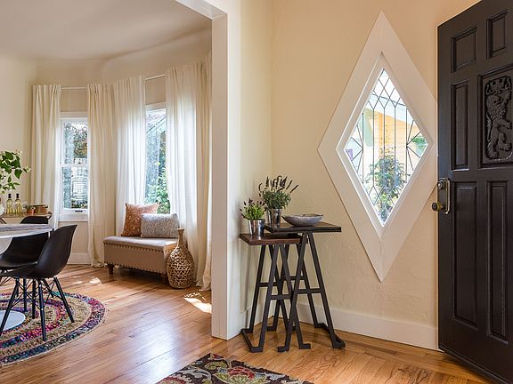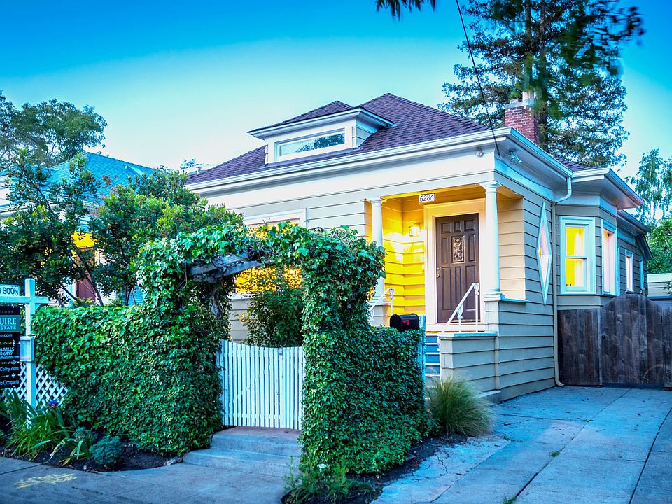 Be sure to visit our listing site at www.6286Colby.com for more info. Nestled mid block in the heart of Rockridge, this just under 1,200 sq ft. two plus bedroom, two bath bungalow home is the perfect cute-as-button country cottage in a location that is only a stone's throw from shopping and transportation. The home's design is chic simplicity, set off by crisp, pale tones and hardwood floors. A formal entry leads to the living room, with its large period window, overlooking a private yet verdant front garden, followed by the formal dining with its large bay window and fireplace. The kitchen features ample period charm, including an O'Keefe and Merritt stove, high ceilings and plenty of room for either a large island or a farm table.The rear master bedroom connects to a garden-facing enclosed sun porch. There's even a drop down stair to the attic with storage for all your belongings. Out the back door is the sweet country-style backyard with it's fabulous deck, mature trees, vegetable garden, skylit artists studio and more. Open Sunday. 1 - 4pm