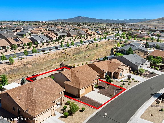 Don't miss seeing THIS standout home in a newer area of desirable Granville in Prescott Valley! From the minute you open the front door, you will get hit with a strong feeling of just how light and bright this home IS!!! Come inside to an open floor plan featuring 10 ft ceilings, 8 ft doors, stylish luxury vinyl flooring with carpet only in bedrooms, modern quartz countertops and contemporary lighting throughout. If you're looking for a home with an exceptionally spacious Primary Suite that includes space for an additional sitting or exercise area along with walk in closet, this is your home! Master bathroom features a walk in shower and double vanity. Enjoy Mountain Views from your front porch or the extended length covered back patio. Easy care backyard features paver patio extension, natural looking artificial grass, mature trees and flagstone steps leading to the side gate. A 2.5 car garage with 4 foot extension rounds out this exceptional home. Granville's fantastic Spur Cross Clubhouse amenities are right close by. Shopping, restaurants and medical all conveniently just a few minutes away too!