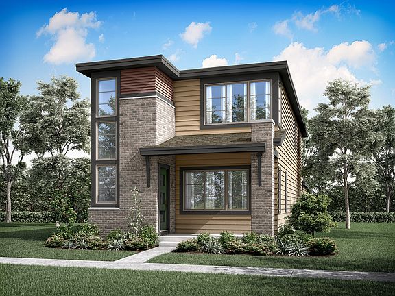Sophisticated & Contemporary design featuring expansive windows that flood the home with natural light. The spacious kitchen features a convenient island opening to the dining area. The dining area provides access to the covered patio (pick the Outdoor Living option for expanded outdoor entertaining or our optional Rec Room for a unique hang out space). Upstairs leads to the private primary suite with a generous walk-in closet, two additional bedrooms (or choose the loft or home study) with a shared hall bath, and laundry room. Optional 717 sq.ft. unfinished basement or 638 sq.ft. finished basement includes living area, bedroom, bathroom & unfinished storage.