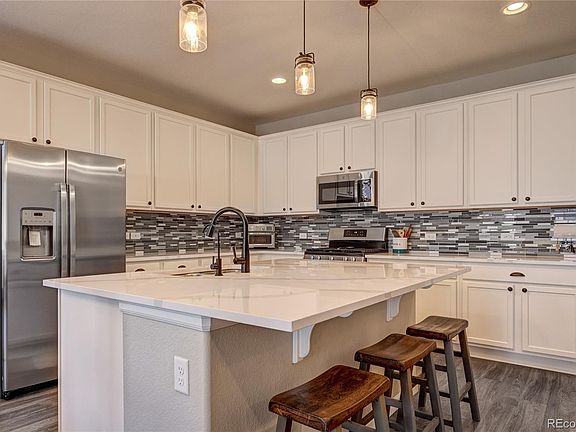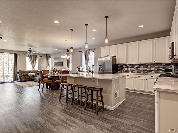 Welcome to your new home in the highly sought after community of Cobblestone Ranch, designed and built by the renowned Richmond American Homes! This stunning 3-bedroom ranch-style home was built less than five years ago and boasts a bright and open layout that's perfect for everyday living and entertaining, with beautiful finishes and attention to detail throughout. The spacious kitchen is a chef's dream, with ample storage, massive island with seating, stainless steel appliances, and gorgeous quartz countertops.