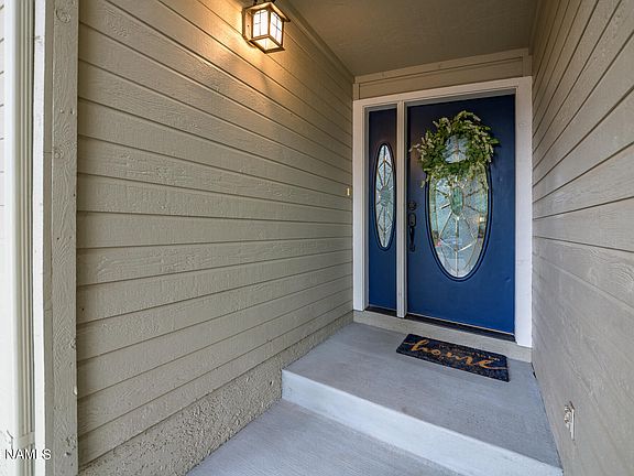 Do not miss this beautifully updated home situated on a large corner lot in one of Flagstaff's most desirable neighborhoods. At the front entry you are met with soaring ceilings, large windows and a grand wooden staircase with dark iron accents. Views of the mature ponderosa pines can be taken in from the front family room and large dining area. As you continue through the first level, the fully remodeled kitchen boasts a large island fit with a wine fridge, stainless appliances, custom cabinetry and a breakfast nook. The main living room focuses on a stone surround gas fireplace with a custom hearth. The upper level hosts a primary suite with a private walk-out balcony, ensuite bathroom and walk-in closet. Across the landing are two large guest bedrooms, one with a walk-in closet. The outdoor spaces are just as impressive as the remodeled interior. At almost 1/4 acre, the lot features a fully landscaped backyard that provides mountain living at its' finest. Mature ponderosa pines provide privacy and that cozy mountain feel. A well manicured grass lawn brings a pop of color and plenty of room for the kids to run. A custom inset stone fireplace area provides the perfect space to enjoy an evening cocktail or roast marshmallows under the stars. The back deck leads to an inset hot tub perfect for a relaxing soak. This is truly a special property with updates too lengthy to list. The seller has taken immaculate care of the home and has spared no expense to make this Walnut Ridge home a show stopper!