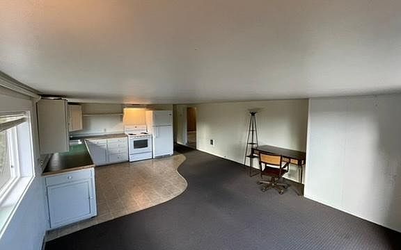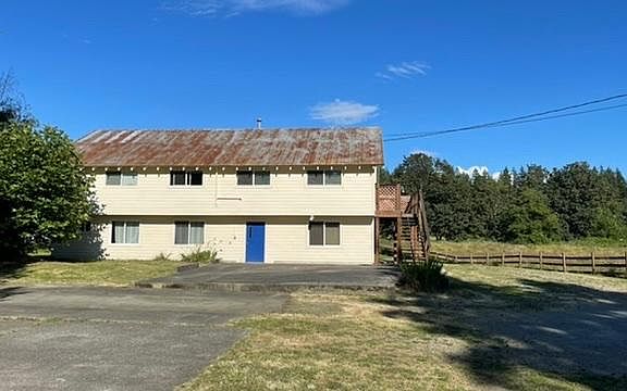 Rustic country home with 2 bed apartment over large shop space. Huge backyard with Friday Creek running through the back where there's a fire pit/hang out spot. Salmon run in season. Wildlife including eagles and deer frequent the area. Horses, cattle and sheep graze on either side of the property. Paved parking up front, shed out back. Shop has large office space as well. Strictly no pets and no smoking. Month to month. Renter pays all utilities/propane/garbage. Water is provided via well. No pets, no smoking.