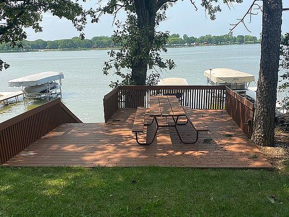 Perfect furnished summer cabin ready to move in on the lake! One bedroom plus a bunk room. One bath. Updated flooring. Taking offers of $390,000 minimum. Great yard with 3 decks. 50’ Lake front. Storage shed for all your lake toys. Includes Shorestation dock, 2009 Ebbtide boat/trailer and lift.