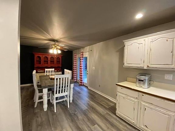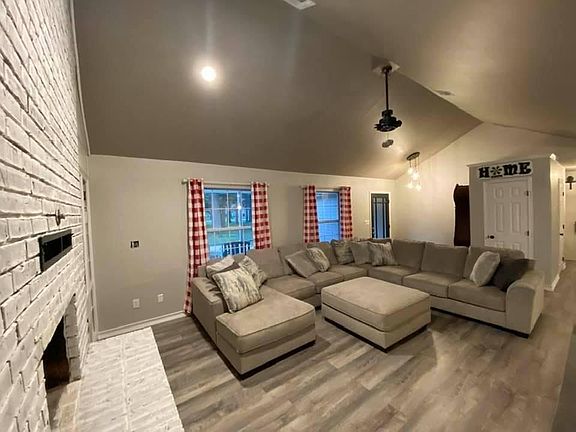 Modern Farmhouse charm in this completely updated one level home. This 4 bedroom, 2 bath home, is just out of city limits but only 2 minutes to shopping, dining, and Honey Creek Marina! Grand Lake is a short golf cart ride away! New flooring, paint, carpet, lighting and refinished cabinets. Vaulted ceilings, wood fireplace, large dining with French doors, barn doors, crown molding, shiplap accent wall and neutral colors. Outdoors enjoy the stamped patio, pergola w/ outdoor TV, covered front porch, maintenance free exterior, oversized garage and large lot with shade trees. No HOA. No restrictions. Room for animals, boat and RV. Move in ready!