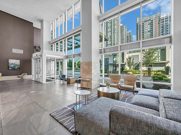 Gold House South Tower: Bright and impressive 1150 sqft 3-bedrooms suite nestled in the heart of Metrotown. Revel in the stunning 180-degree views from the expansive 420 sq ft wrap-around balcony, with exposure to the south and east. The suite boasts high-quality, modern interior design, featuring an Armony Cucine kitchen equipped with integrated Bosch appliances and a pantry for extra storage. Soaring 10'5 ceilings, central A/C, 24-hour concierge service, and access to over 11,000 sq ft of amenity space enhance the luxury living experience. Perfectly positioned near Metrotown, Crystal Mall, Burnaby Public Library, Bonsor Community Centre, and Metrotown station, this desirable dream home offers an unparalleled luxury lifestyle.