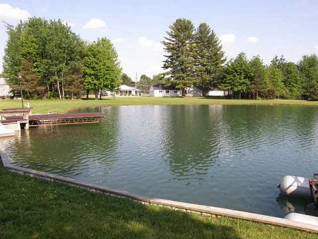 15 acre private lake on 29 acre parcel. Dock, concrete boat ramp, and perked building site. 2 bedroom home in mint condition and 3 bedroom farmhouse. 40x84 heated barn with office and bath. 4,000 sq ft storage building with 2 bedrooms and bathroom. Natural gas and cable. City water. Zoned R-2 ~ ok for multiple dwellings. Lake stocked with bass, blue gill, perch and catfish.