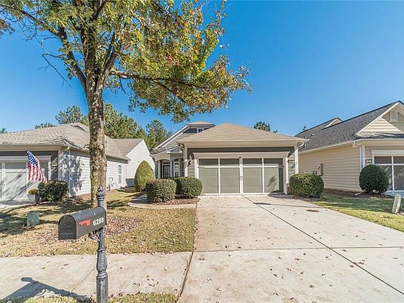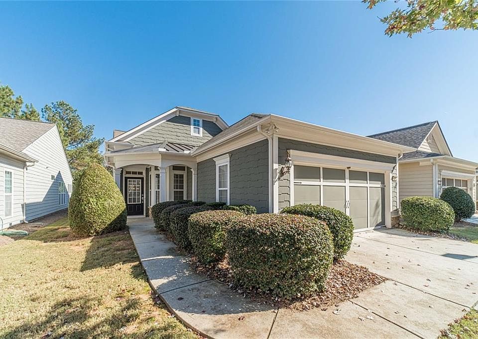 Don't miss this opportunity, This IS the one that you've been waiting for. Perfect Pine Spring model with 2 bedrooms plus front office with a closet that some call a third bedroom. Open floorplan with large living/dining flex space that’s open to the kitchen. All with hardwood flooring. Freshly painted in a bright neutral color. Guest bedroom is spacious and has full bath off the hall. It also has a separate laundry room between the bedrooms (not in the kitchen) and the washer and dryer are included. Large master bedroom big enough for your bed and all your furniture. Master Bath boasts walk-in shower, double vanity sink and walk-in closet. Nice open kitchen has plenty of cabinets and counter space and overlooks the dining/living space and has a breakfast bar for casual eating. There is also a moveable island great for extra storage, serving and prep space (or to keep you mail and other things you don’t want on the counter). Nestled off the kitchen is a large sunroom where you can set up crafts, create a mancave, have some quiet time or another office. The choices are endless. The sunroom leads to the back patio covered with a pergola and privacy wall. Fenced and landscaped yard overlooking a natural area, create your own backyard oasis that can be enjoyed from the sunroom or patio. The garage is also quite spacious and has additional insulation for better climate control. There is also a large finished storage space in the garage attic perfect for storing your luggage and holiday décor. 55+ Gated neighborhood with scads of amenities, lovingly dubbed a cruise ship on land. Massive clubhouse hosts fitness center, library, cooking space, outdoor pool, lap pool with zero entry and hot tub. Stay active with tennis, pickleball, bocce and even a softball field with active teams, paved walking trails, beautiful outdoor greenspace, and approx. 100 clubs to participate in! Entertain the pups and the grands with a playground and dog park too. Very close to shopping, restaurants and NE Georgia Heath Center. Golf Cart Friendly Community, tool around the neighborhood, drive it to the grocery store, restaurants or even your doctors appt. Schedule your showing today!