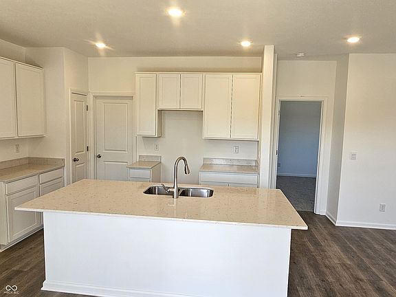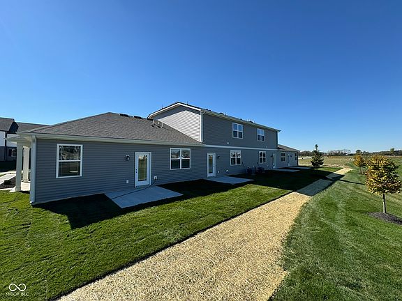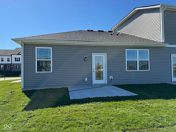 New Quick Move-In by D.R. Horton! This low maintenance single story Columbia townhome in the Towns at Trailside features 2 bedrooms, 2 full baths and an ideal open layout. Enjoy entertaining while guests gather at the luxurious kitchen island, in the breakfast nook or spacious great room. Luxury abounds with a long list of features including 9 foot ceilings, 42 inch cabinets, quartz countertops, durable laminate flooring, luxe shower in main bath and more. The split bedroom plan offers privacy for guests. Finished 2 car garage provides added insulation for Indiana winters. Enjoy amenities such as a clubhouse, pool, fitness center, bocce, tennis, pickleball and basketball courts, community gardens, extensive trails connected to the Big 4 Rail Trail and more. Home includes America's Smart Home Technology featuring a smart video doorbell, smart Honeywell thermostat, Amazon Echo Pop, smart door lock, Deako plug 'n play light switches and more.