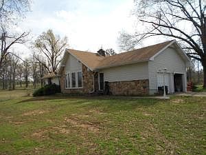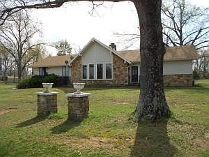 Beautiful setting for this 3 bedroom, 3 bath home. Huge stone fireplace & large living room. Kitchen range is situated in a large brick hearth.New roof 2011, range,garage doors, laminate & tile in last 3 yrs. Grounds include one large pond, a Koi pond & large trees.Land is virtually level on paved road minutes from town. Don't miss this one!All numbers are approx, age is an estimate