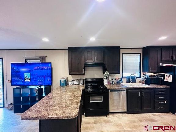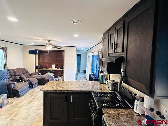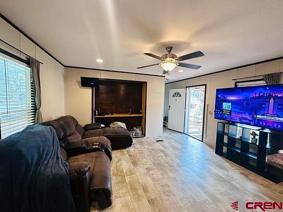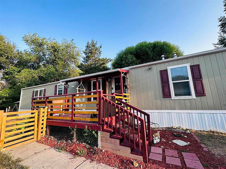 Welcome home to the lovely River Meadows community. This 2019 manufactured home is just adorable. Feels like stepping into a brand new home. Enjoy the lovely yard which backs up to Uncompahgre River with walking trails for you to enjoy. Great playground in the neighborhood and a community center that is available to the homeowners. There is a ton of mature trees for shade in the summer while you enjoy your outdoor activities. This home is in a prime location within the sudivision, no neighbors behind you, just a gorgeous river and wooded area and literally within a couple minutes to the Montrose Regional Airport. Location, location location and convenient easy living. Lot rent is currently $597.00. Hurry and schedule your showing today and let's make this your next home.