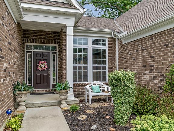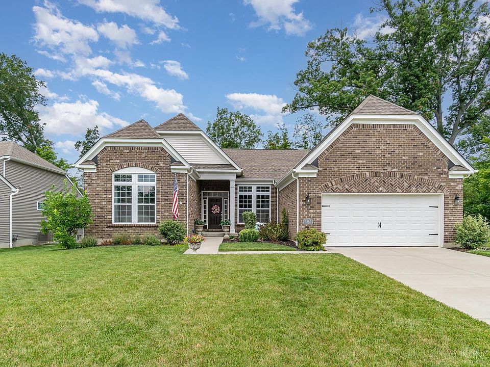 One level living at its finest! Meticulously maintained by one owner and upgraded at every turn, this Thornton ranch plan by M/I offers formal dining space, open living area with gas fireplace, gourmet quartz/stainless kitchen with center island + cabinetry extended into breakfast room, primary suite with luxury dual vanity bath + walk-in closet, and two additional bedrooms/hall bath. Tray ceilings in dining/living/primary bedroom. Hardwoods thruout main living spaces. Ceiling fans in all bedrooms. Full basement has bath rough in and egress window for optional 4th bedroom. Plus a 2-car attached garage, covered deck, and custom lower deck overlooking wooded privacy. All on a premium lot adjacent to green space in a popular community with walking trails!