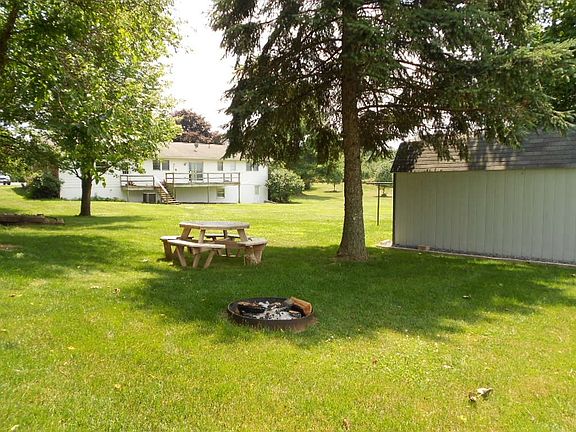 Backs to open Farmland You'll love this property w/over an acre lot, large deck, large outdoor shed, walk-out basement,oversized garage,w/ work area,wood burning fire place, bar, master bedroom w/full bath, large paved driveway, potential for 4th bedroom, replacement windows, rare find! Not many for sale like this one.