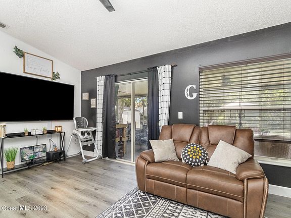 Updated 3 bedroom/ 2 bath/ 2 car garage home in the back of Port St John. New roof in 2018, new tankless water heater in 2022, A/C in 2015, & new luxury vinyl plank flooring. Kitchen cabinets were repainted, topped with granite & newer appliances. Updated bathrooms. Inside laundry, vaulted ceilings, tinted windows, wired 8 camera security system. Master bath has walk in shower and walk in closet with custom shelving. Large screened in back porch. The backyard oasis features a string lit fireplace hangout area with attached paver patio. Shed for storage & chicken coop. Easy access to I-95 & just a few blocks away from the elementary, middle & high schools. Fay Lake Park is less than a mile away & has a playground, kids park, dog park, covered pavilions, fishing lake, biking & hiking trails